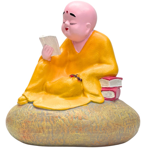 Wonderland Zen Monk Figurine Reading on Stone – Hand-Painted Statue for Home Decor, Office Desk, and Meditation Space