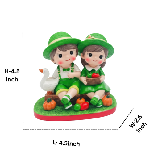 Wonderland Adorable Boy and Girl Sitting Garden Figurine – Hand-Painted Resin Childhood Sweethearts Statue with Goose and Pumpkin – Charming Home & Shelf Decor Gift-4.5x2.6x4.5 inch