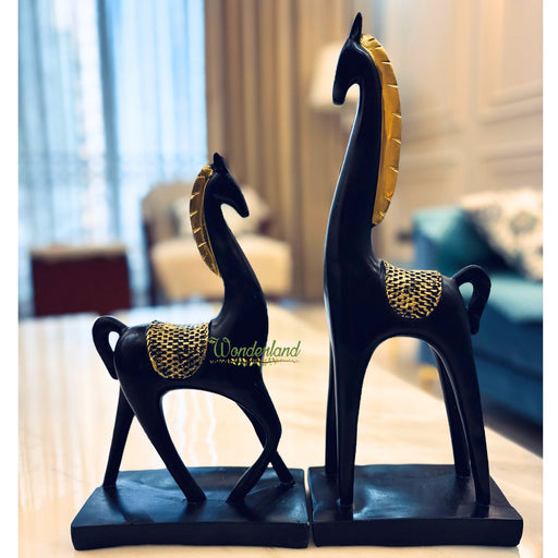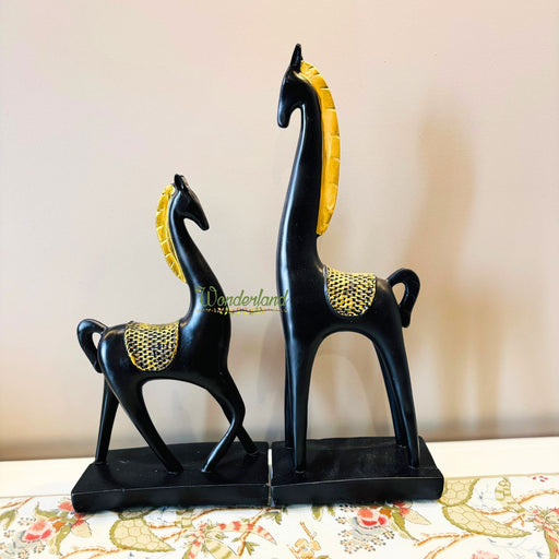 Wonderland Black and Golden Horse Showpiece Set of 2 for Home Decoration