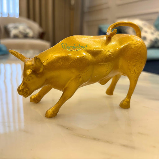 Wonderland Golden Bull Showpiece | Financial Symbol Decor | Gold Desk Statue for Office and Home