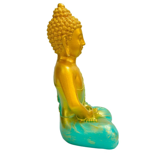 Wonderland Hand-Painted Gold & Teal Meditating Buddha Showpiece for Office, Temple, or Home