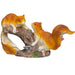 This charming figurine features two orange squirrels resting on a brown tree log. Made from durable resin, this small statue is perfect for adding a touch of nature to your home or garden. It is ideal for fairy gardens, miniature landscapes, flower pots, or as a cute accent on a shelf, desk, or patio table. The detailed design captures the playful look of a pair of squirrels in the forest. It makes a lovely gift for nature lovers and garden enthusiasts.