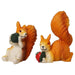 Bring a touch of the forest and playful charm to your home or garden with this delightful set of three resin squirrel figurines. Each squirrel is meticulously hand-painted in vibrant orange and white tones, capturing their lively spirit. The centerpiece squirrel sits atop a textured green chestnut, while the other two crouch playfully, each holding a tiny red and green acorn. Made from durable, high-quality resin, this trio is perfect for year-round display, adding a whimsical touch to bookshelves, mantels, desks, or outdoor settings like flower pots and fairy gardens. They also make a wonderful gift for animal lovers and nature enthusiasts!