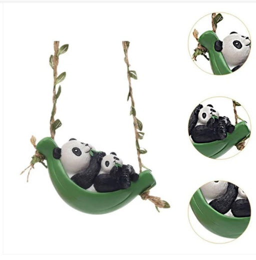 Hanging Garden Pandas – Mother & Baby Panda on a Bamboo Leaf Swing Decor