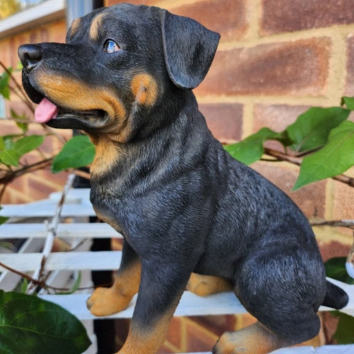 Playful Puppy Garden Figurine – Realistic Black and Tan Dog Statue for Indoor/Outdoor Home Décor-4x2.6x7.5inch