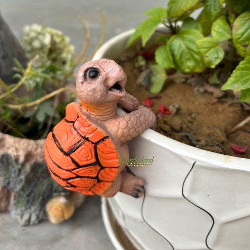 Wonderland Adorable Hand-Painted Climbing Turtle Pot Hugger Figurine: A Vibrant Orange Turtle Garden Statue Designed to Hang Effortlessly from the Rim of Flower Pots, Planters, and Indoor Vases