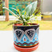 Bring home a piece of vibrant Indian artistry with this truly unique, hand-painted style terracotta planter. This sturdy pot is beautifully decorated with an ethnic folk design—reminiscent of traditional Tribal or Warli art—featuring a striking combination of deep black, bright blue, and crisp white patterns. The colourful dots and triangles give it an authentic, artistic touch.Crafted from natural terracotta clay, the base remains unglazed inside, ensuring your plant's roots get the essential 'breathing space' and excellent drainage they need. This pot is not just a container; it's a decorative statement piece! It's perfectly sized for your prized succulents, cacti, or as a vibrant holder for everyday items. It makes for an exceptionally thoughtful and value-for-money gift that promotes Indian crafts.