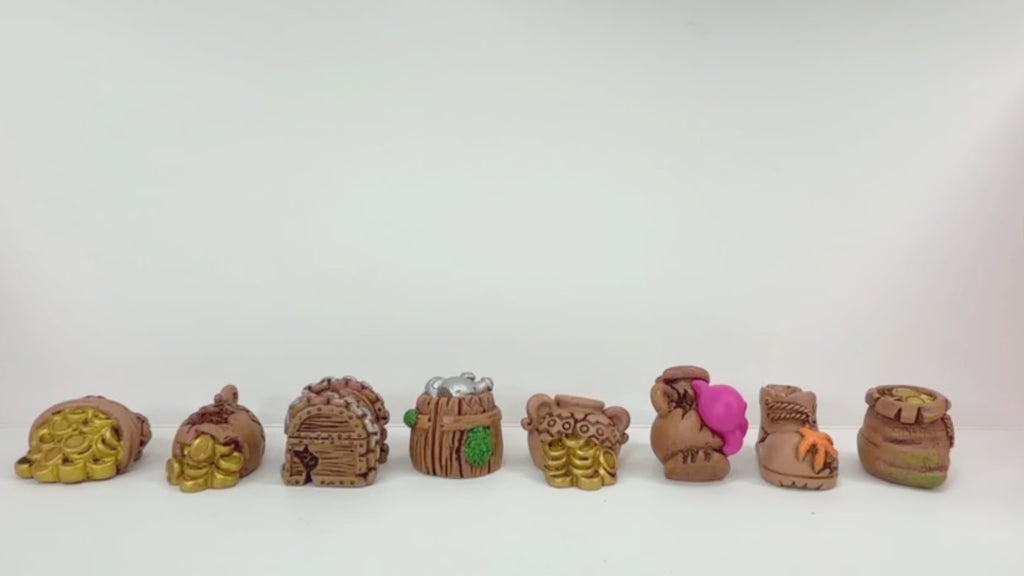Dive into the world of miniature treasure hunting with this enchanting set of 8 pirate-themed resin charms! This assortment includes finely detailed pieces like overflowing money bags, a chained wooden treasure chest, ancient broken jars with gold coins, and a unique jar featuring a small pink octopus. Perfect for adding a touch of adventure to your crafts, these durable resin cabochons are ideal for DIY jewelry making, phone case decoration, scrapbooking, dollhouse accessories, or creating unique terrariums and fairy gardens. Bring your pirate, ocean, or antique-themed projects to life with these unique miniature treasures.