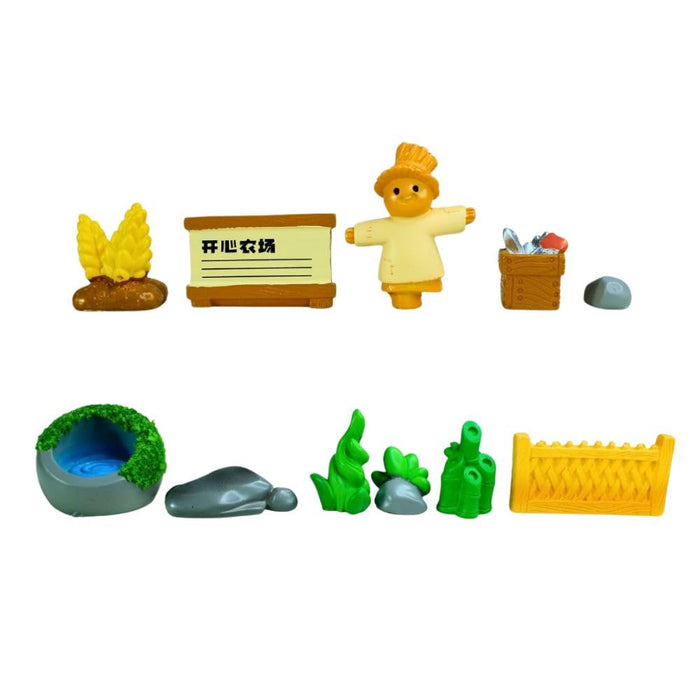 Wonderland (Set of 11 Farm Items scarecrom, Pond, Grass, Barrels, Stone etc DIY Your mini gardem