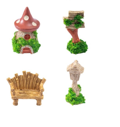 Wonderland set of 4 Miniature Fairy Garden Accessories Kit | Whimsical Wood-Look Resin Figurines (4 Pcs)
