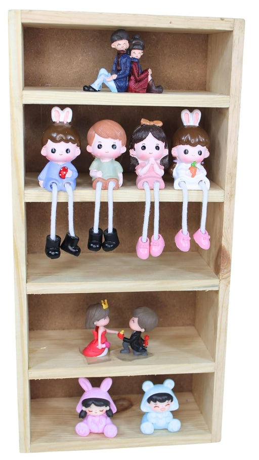 5-Slot Wooden Almirah-Shaped Mini Figures Cubby Box Display Shelf Organizer Storage Box (Light Brown) (Miniature not Included