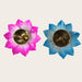 This elegant set includes two individual diyas, each featuring a traditional brass oil lamp centered within a vibrant, multi-toned lotus petal base. One diya blossoms in a captivating pink hue, while the other radiates in a serene blue, both designed to capture the beauty and symbolism of a lotus flower. These visually striking lamps are perfect for enhancing your spiritual space, adding a festive touch to celebrations, or serving as charming decorative accents in any room.