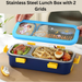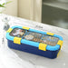 This "Astronaut" Space Explorer Bento Box is the perfect companion for young voyagers ready to discover new flavors. Featuring a deep blue body and a bright yellow locking system, the lid showcases a playful cosmic scene with an astronaut, planets, and a friendly UFO. The lunch box is engineered for both style and durability, boasting a premium stainless steel interior that provides a safe and easy-to-clean surface for all types of food. To ensure a secure journey from home to school, the lid is equipped with six robust snap-latches that create a firm seal. Its slim, rounded rectangular profile is specifically designed to fit easily into school bags, making every meal a stellar experience.