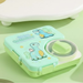This vibrant "Dino Cuteness" Bento Box is designed to make lunchtime an adventure for your little ones. Featuring a soft mint green palette and playful dinosaur illustrations, this lunch container combines a whimsical aesthetic with high-functionality.The standout feature is the integrated snack pod—a dedicated circular compartment with its own lime green lid—perfect for keeping yogurt, dips, or smaller treats separate from the main meal. To ensure everything stays exactly where it should, the box is equipped with heavy-duty locking latches on all sides, providing a secure and reliable seal for a mess-free school day. Durable, charming, and easy to clean, it’s the perfect companion for healthy meals on the go.