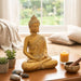 Bring a sense of peace and serenity to your living space with this exquisitely crafted Golden Meditating Buddha Statue. Designed with intricate detailing on the robe and a shimmering metallic finish, this idol serves as a perfect centerpiece for your home or office.In Indian homes, the presence of a Buddha idol is believed to attract positive energy, harmony, and mindfulness. This lightweight yet durable figurine features the Buddha in a seated posture with hands joined in a contemplative gesture, symbolizing inner balance. Whether you are looking to enhance your Vastu, create a zen corner for your daily rituals, or find a thoughtful Housewarming or Diwali gift, this statue is an ideal choice.